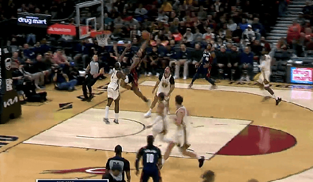 泰森反擊一條龍迎著希爾德單臂劈扣,騎士落后勇士8分